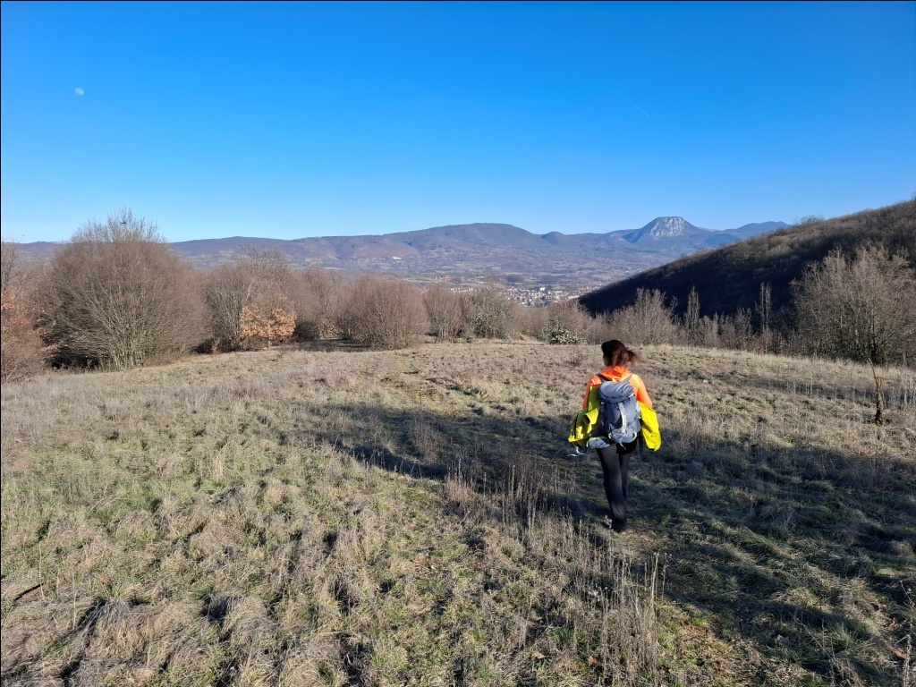 Staza je odlična, suva i osunčana. Pre silaska u Izvor imali smo lep pogled na Stolsku planinu i njene vrhove Strvnu, Korbes, Mali stol, Stolski kamik i Rnjos, kao i na Staru planinu pod snegom:
