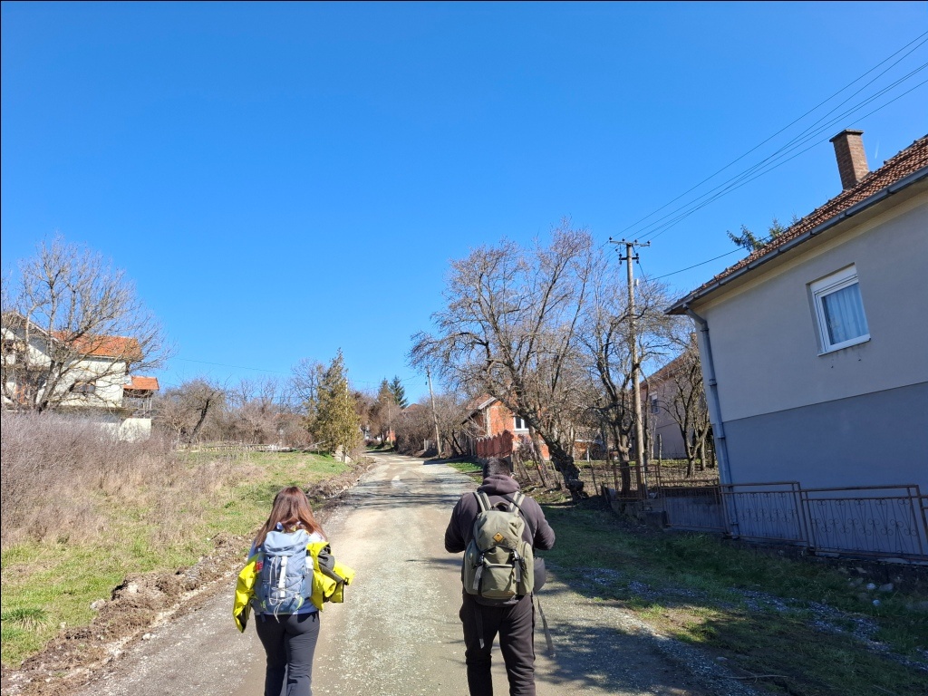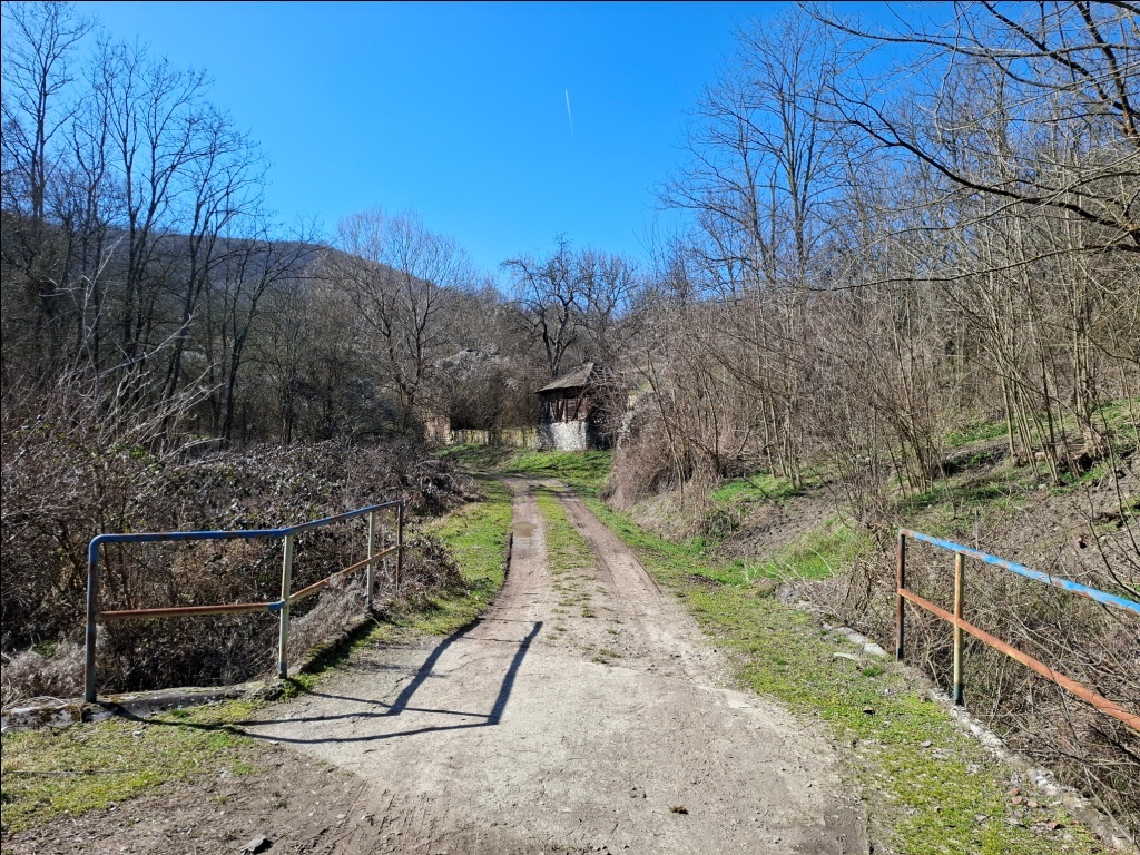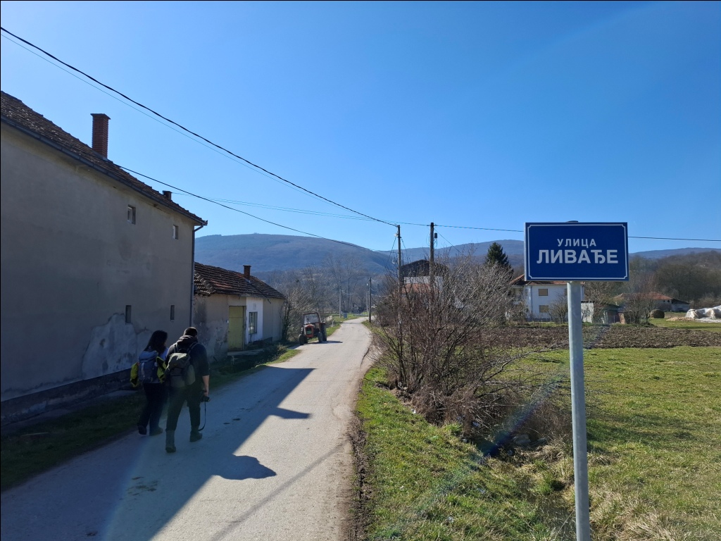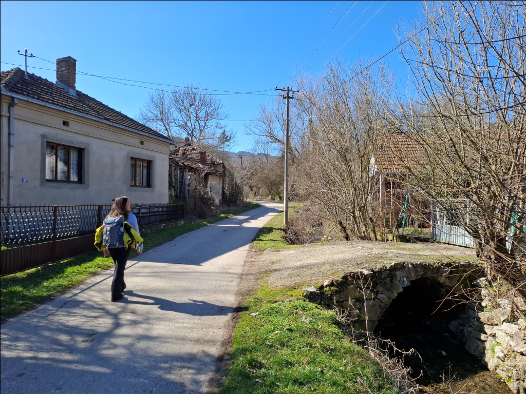 Pratili smo tok potoka sa karakterističnim kamenim mostićima. Po izlasku iz sela prešli smo preko mosta na levu stranu potoka, udaljili se od njega i stigli do groblja: