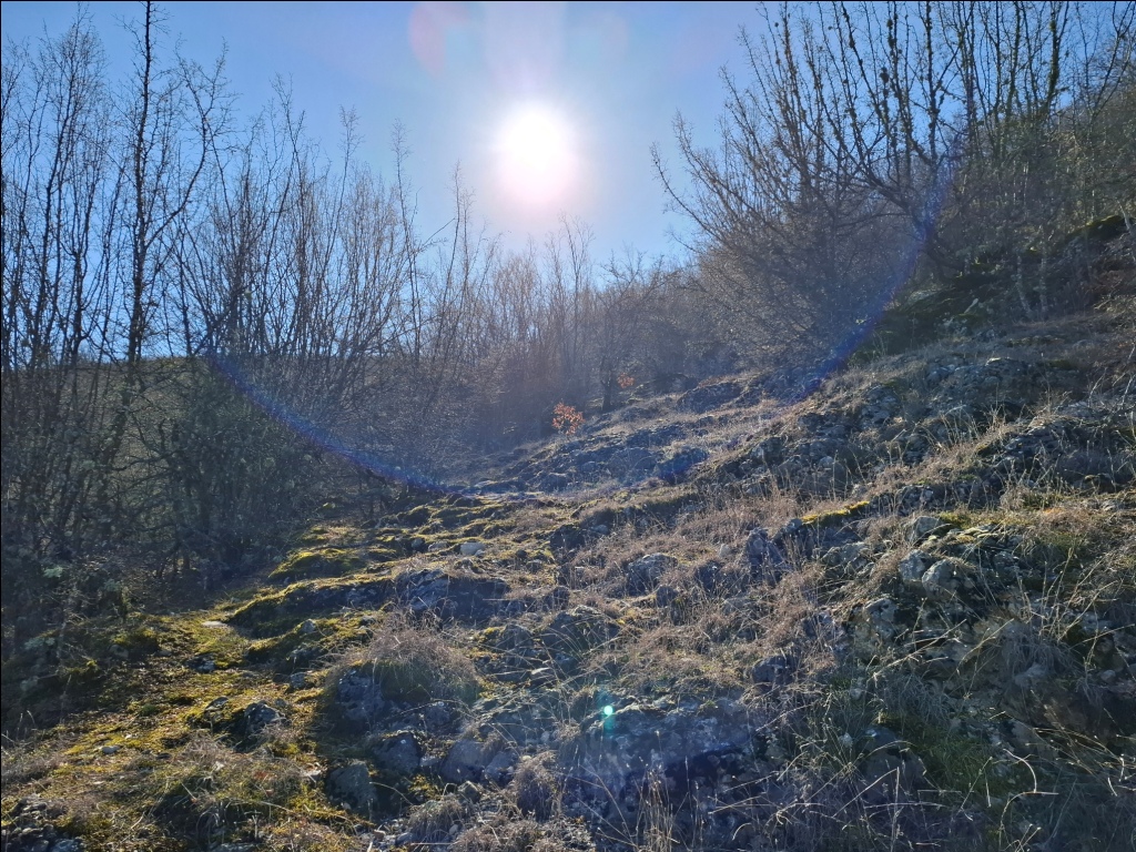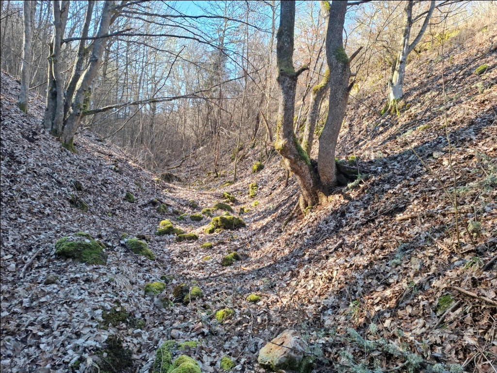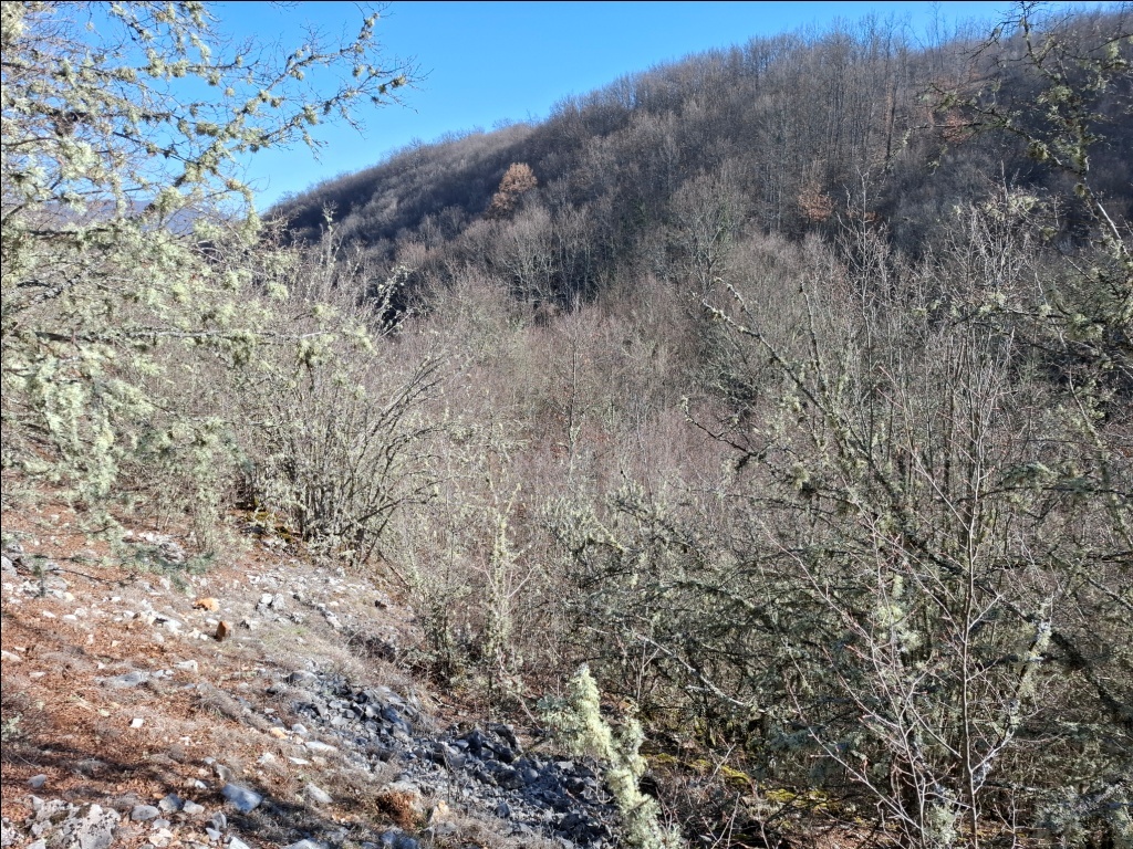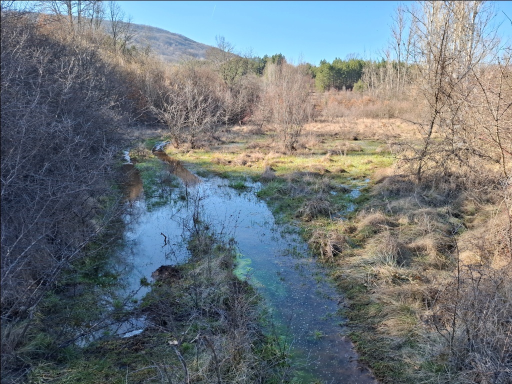 Nismo uspeli da pronađemo pravu stazu. Ispostavilo se u povratku da ona prolazi dolinom dosta više od mesta gde smo se mi nalazili. Ponovo smo se vratili u dolinu potoka jer je moja procena bila da ćemo na taj način brže proći. Uostalom, kada sam Sašom prvi put bio u ovom kraju, februara 2022. godine, upravo tako smo od Izvorske jame stigli do Provaljeničkog vrela Zlatar.