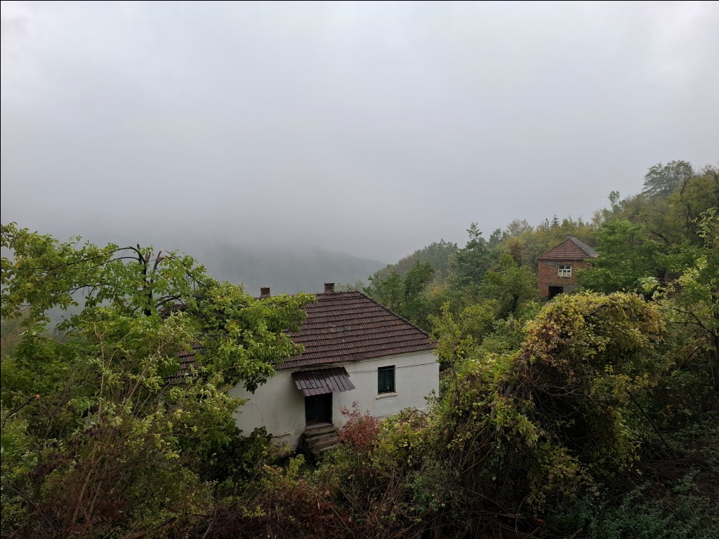 Počela je da pada nešto jača kiša. Narednu deonicu, od zadnjih kuća u Leskovici do raskrsnice iznad sela Radosin, ranije nikad nisam prelazio. Jedino mi je ona falila da ,,kompletiram'' ceo put od Ljuberađe do Crvene Jabuke. Ova deonica je dugačka oko 6 km. Otprilike na pola puta do raskršća je još jedna udaljena leskovička mahala, odavno napuštena. Iskoristili smo priliku da je posetimo i zaštitimo se od kiše. Naišli smo i na svojevrstan ,,bioskop'':