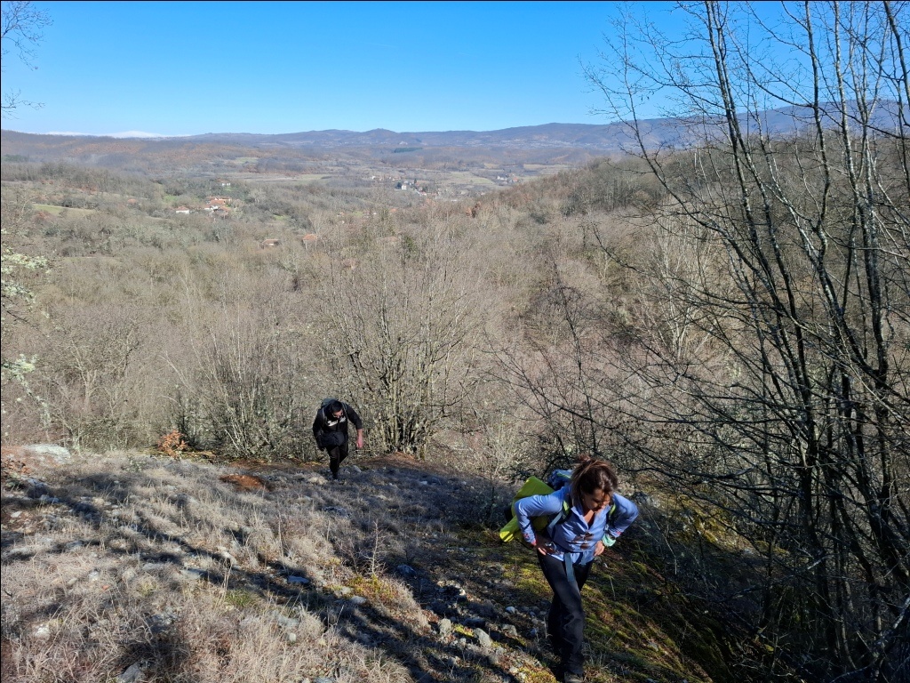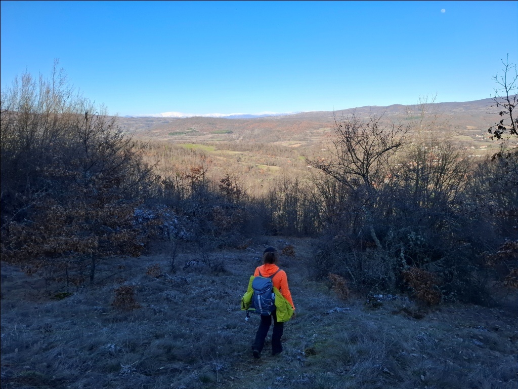 Staza je odlična, suva i osunčana. Pre silaska u Izvor imali smo lep pogled na Stolsku planinu i njene vrhove Strvnu, Korbes, Mali stol, Stolski kamik i Rnjos, kao i na Staru planinu pod snegom: