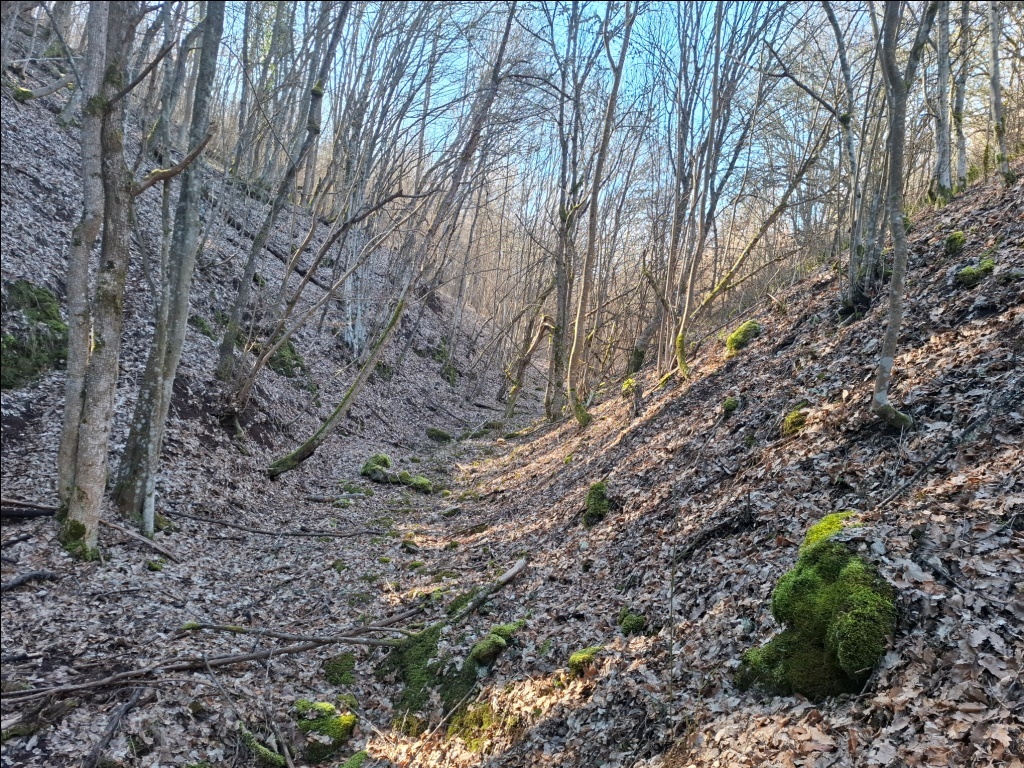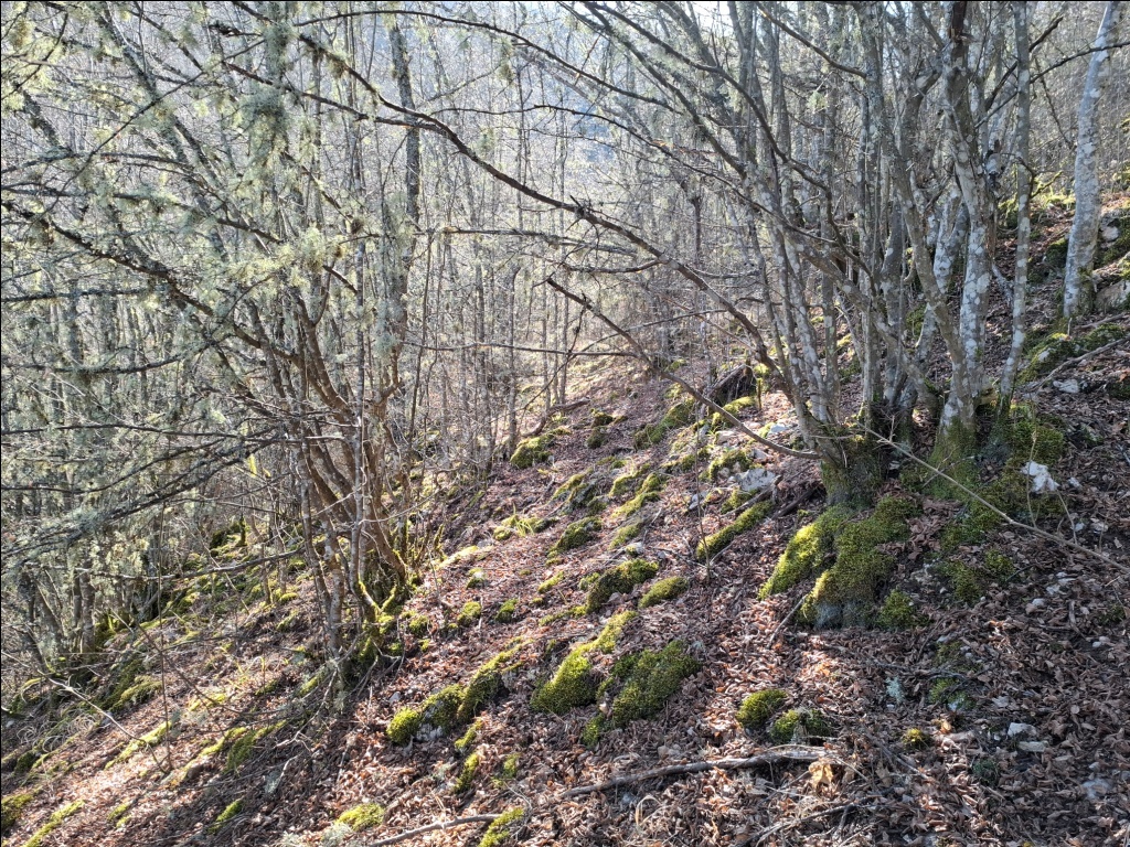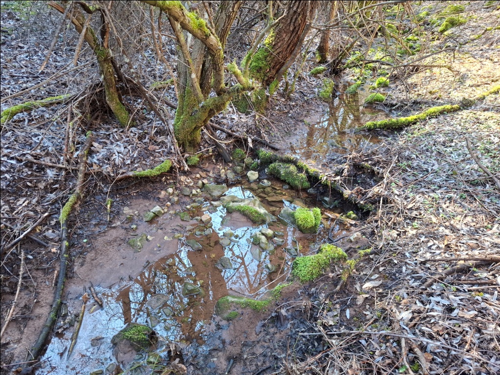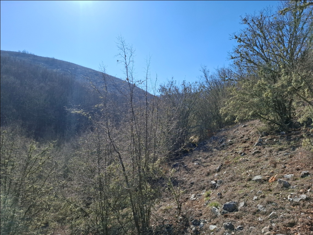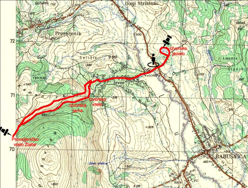 Nismo uspeli da pronađemo pravu stazu. Ispostavilo se u povratku da ona prolazi dolinom dosta više od mesta gde smo se mi nalazili. Ponovo smo se vratili u dolinu potoka jer je moja procena bila da ćemo na taj način brže proći. Uostalom, kada sam Sašom prvi put bio u ovom kraju, februara 2022. godine, upravo tako smo od Izvorske jame stigli do Provaljeničkog vrela Zlatar.