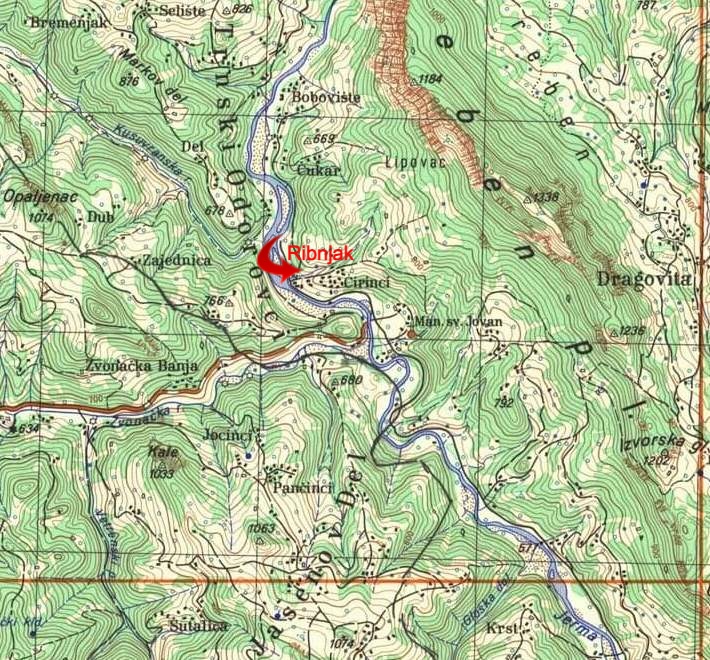 Kod groblja smo napustili glavni put i skrenuli na stazu levo, u pravcu potoka. Ovo je važno mesto, do koga smo se spustili u povratku. Ako se ide u pravcu Suve planine i Provaljeničkog vrela Zlatar, koje se nalazi u njenom podnožju, onda je najbolje ići ovim putem i brzo proći strmu dolinu između Pribovice i Kamenice: