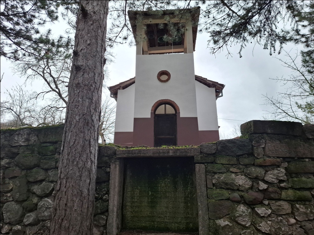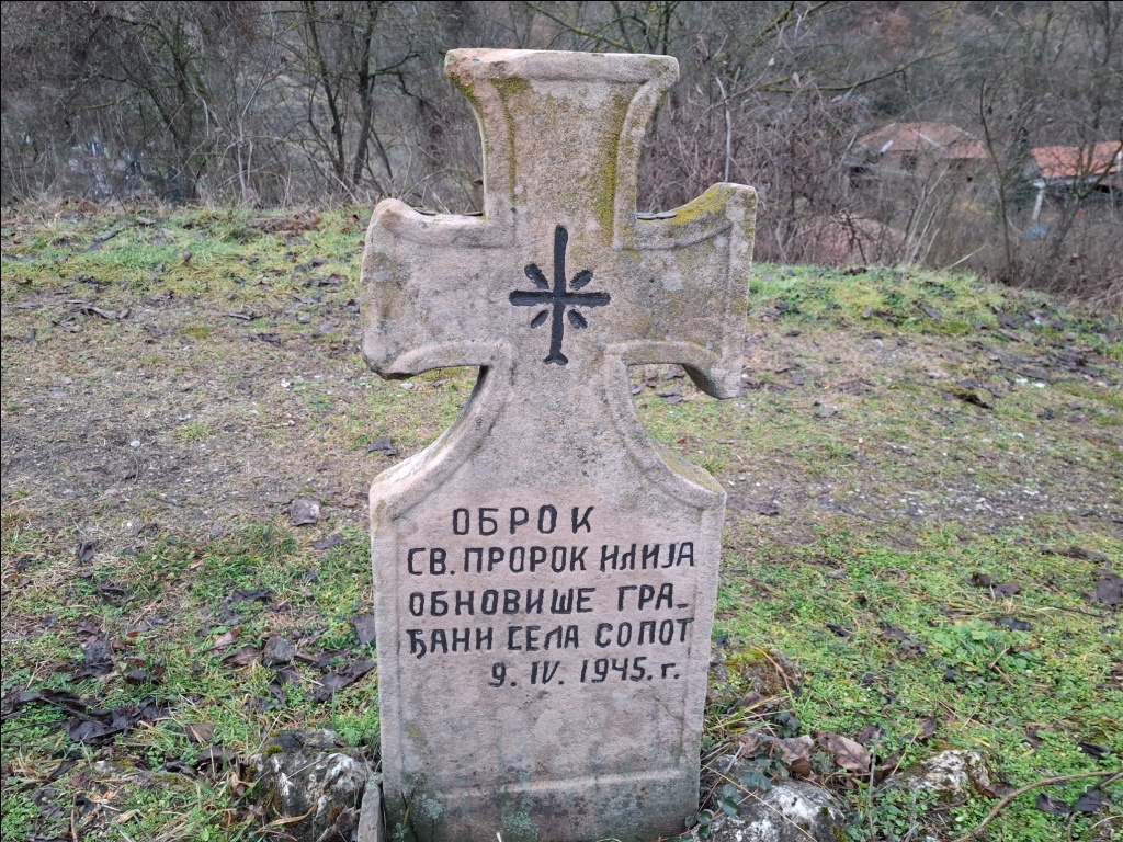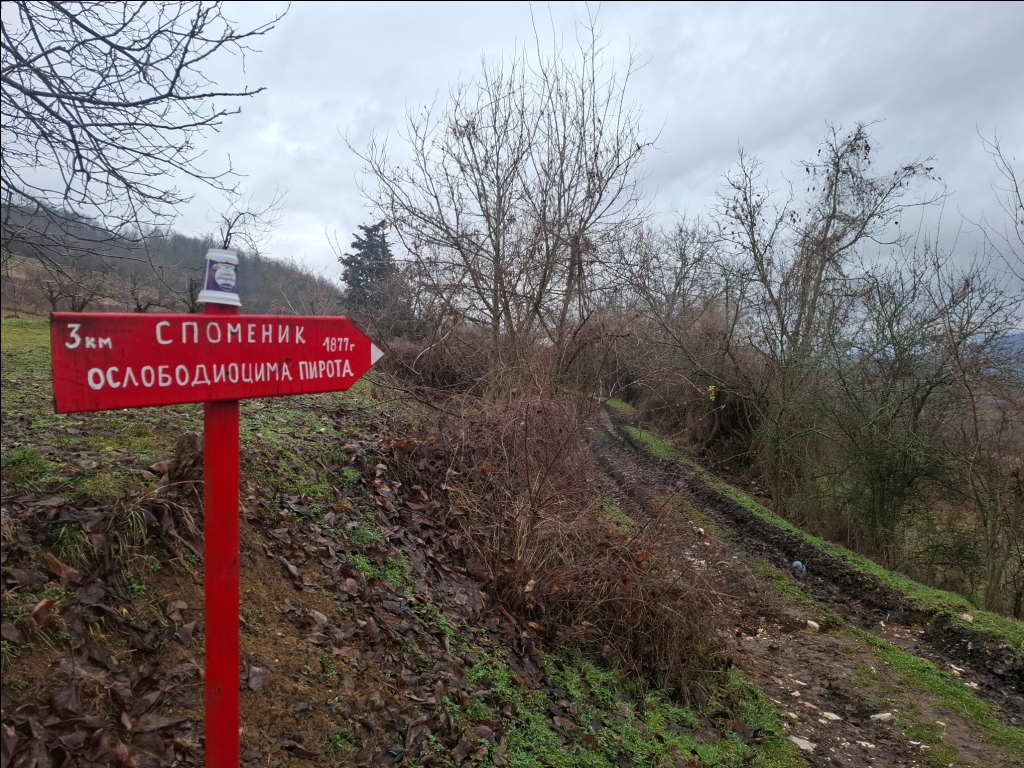 Odmah tu su zvonik (verovatno na mestu starog crkvišta) i skretanje na put kojim se može do puta za Zavojsko jezero i sela Nišor. Na otprilike polovini tog puta nalazi se spomenik do koga sam ja stizao iz drugog pravca - upravo sa puta za Zavojsko jezero i Srednji Visok. Posvećen je oslobodiocima Pirota iz Drugog srpsko-turskog rata, i podignut je na mestu gde je u decembru 1877. godine poginuo čuveni kapetan Milutin Karanović.
