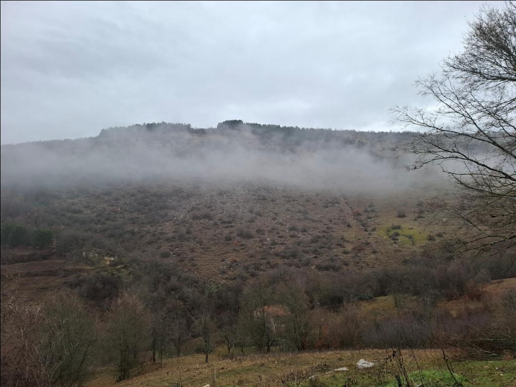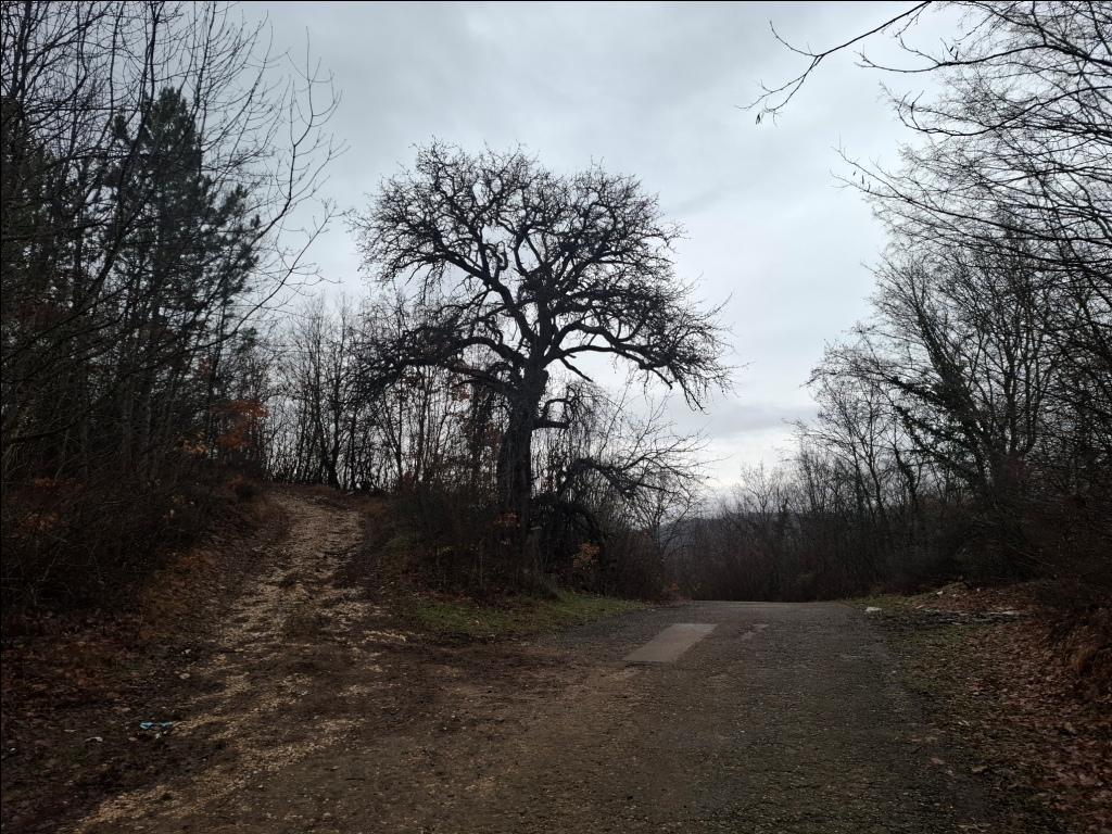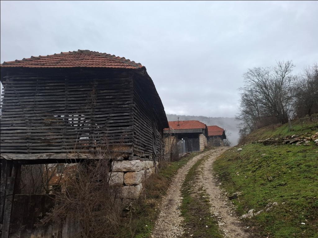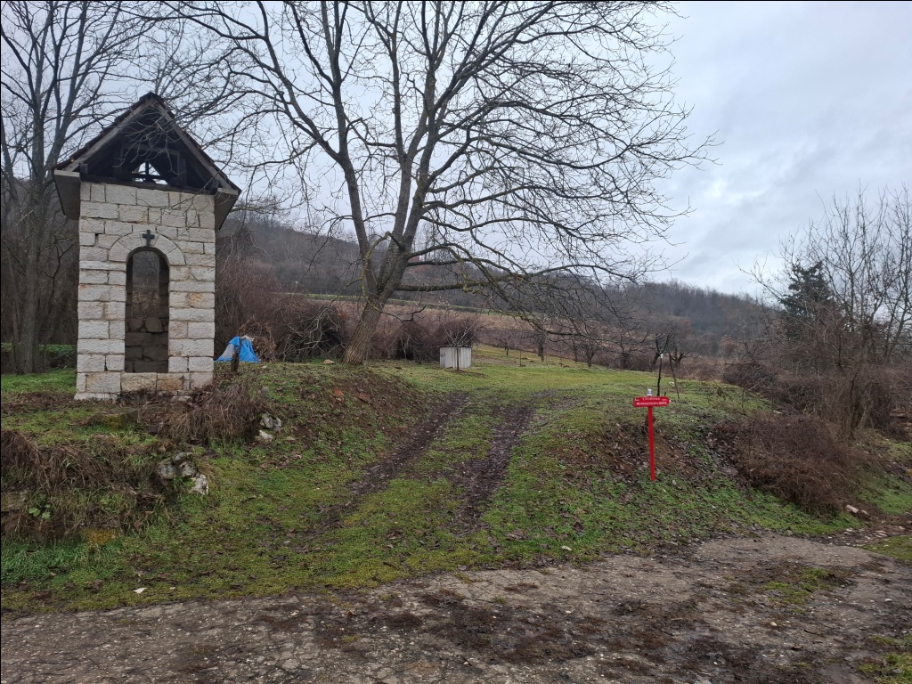 Od crkve nastavlja jak uspon na putu za Oreovicu. Posle pet minuta stižem do prevoja na putu između dva sela. Tu su jedno veliko mirosano drvo i obročni krst (posvećen Svetom Jeremiji, iz 1936. godine), a u neposrednoj blizini i lokalna protivgradna stanica i mesto sa lepim pogledom na kraj u kome idem. Prstom pokazujem na Oreovicu u magli, iza nje su Kulišta (833 m), a desno, iznad sela su Srednja glama i Marine livade: