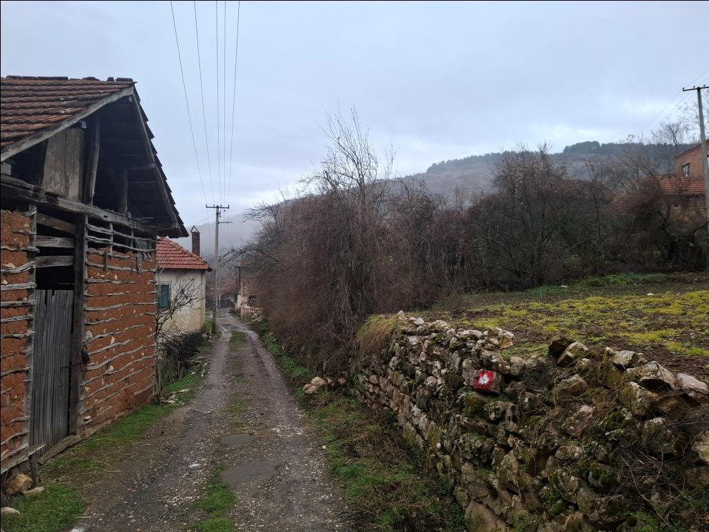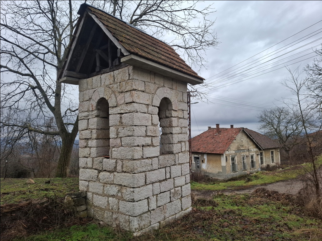 Iznad doma put uz veliki nagib produžava u pravcu Oreovice. Razlika u nadmorskoj visini dva sela je 260 m. S desne strane je napuštena škola, a iza nje i velika seoska crkva. Pored škole je jedna stara i izuzetno lepa kuća: