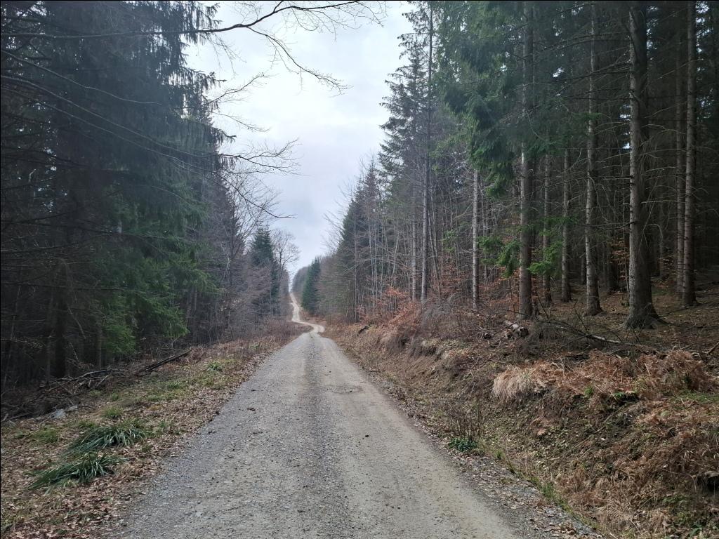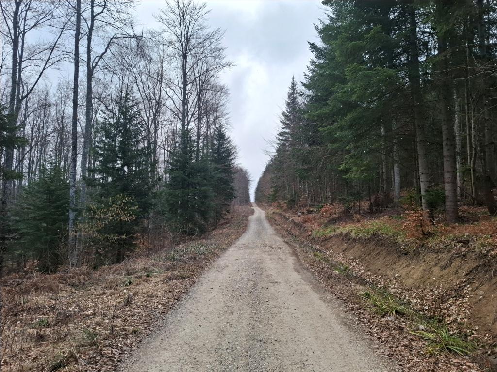 Ja idem desno, na šumski put koji vodi uzbrdo do Odorovskog prelaza. Interesantno je da ovde na rastojanju malo većem od 1 km treba savladati skoro 200 m visinske razlike jer se nalazite malo niže nego na polaznom mestu na prevoju V'zganica!