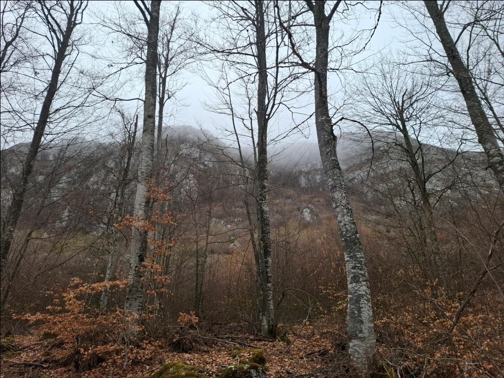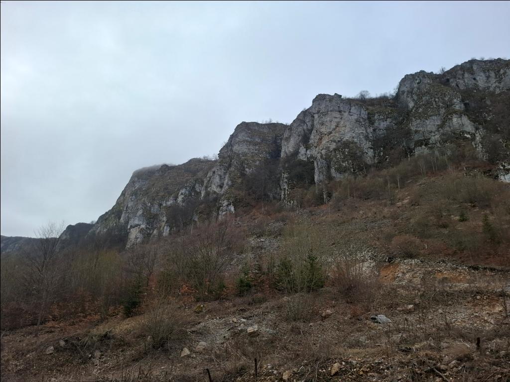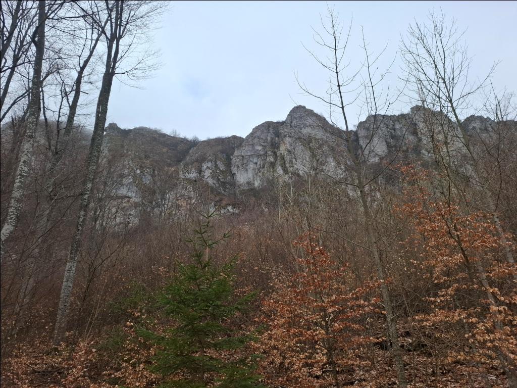 Duboko dole, sa moje leve strane, mogu kroz bukovu šumu da razaznam konture rsovačkog manastira Svetog Ilije. Sa desne strane stene se nadvijaju poput zida i ja uživam u pogledu na njih: