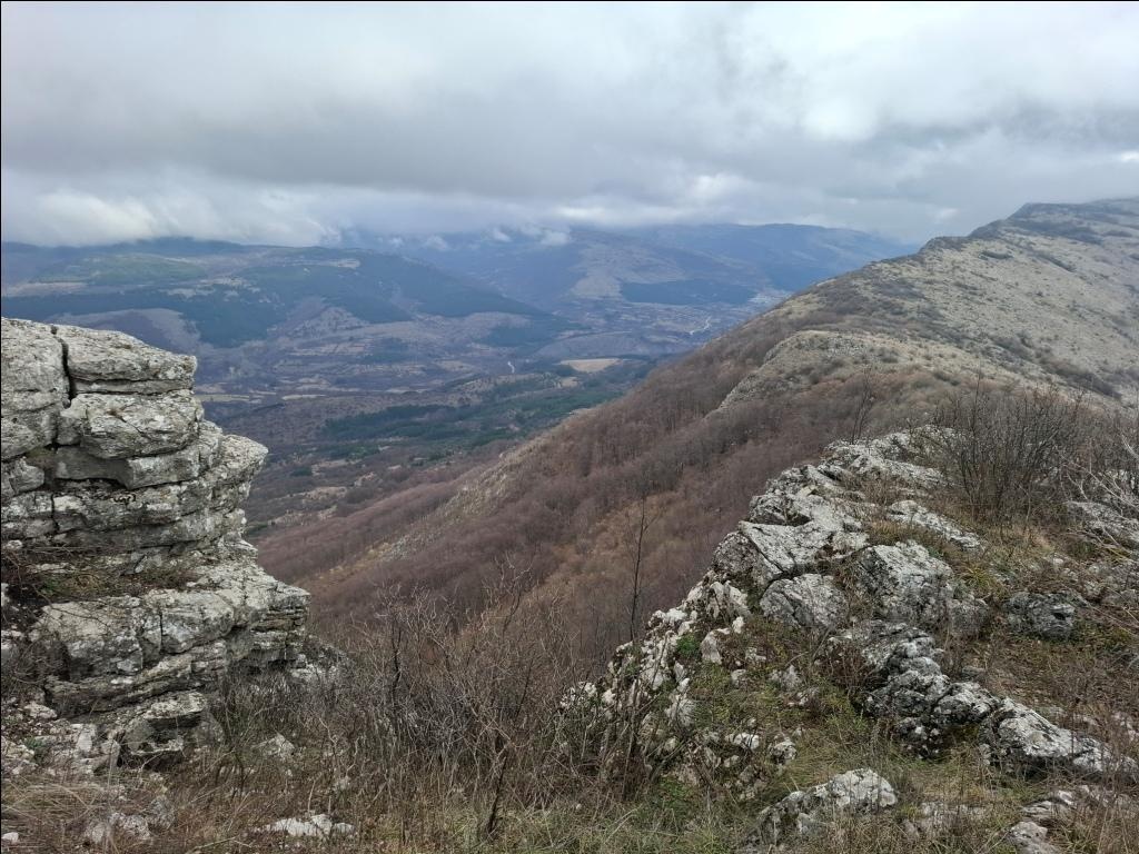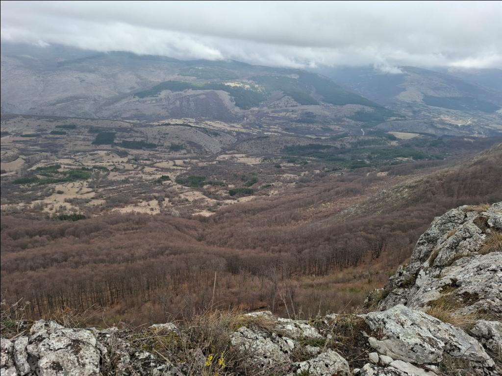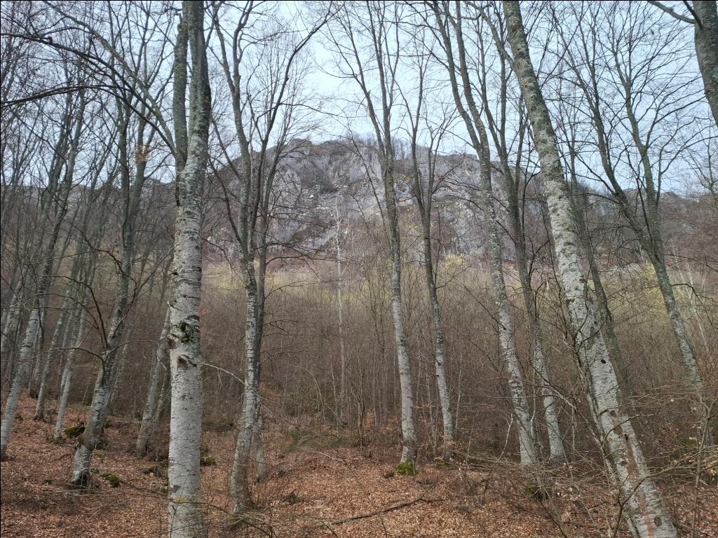 Duboko dole, sa moje leve strane, mogu kroz bukovu šumu da razaznam konture rsovačkog manastira Svetog Ilije. Sa desne strane stene se nadvijaju poput zida i ja uživam u pogledu na njih: