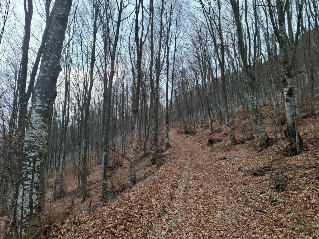 Ja idem desno, na šumski put koji vodi uzbrdo do Odorovskog prelaza. Interesantno je da ovde na rastojanju malo većem od 1 km treba savladati skoro 200 m visinske razlike jer se nalazite malo niže nego na polaznom mestu na prevoju V'zganica!